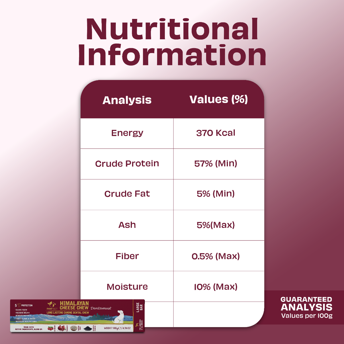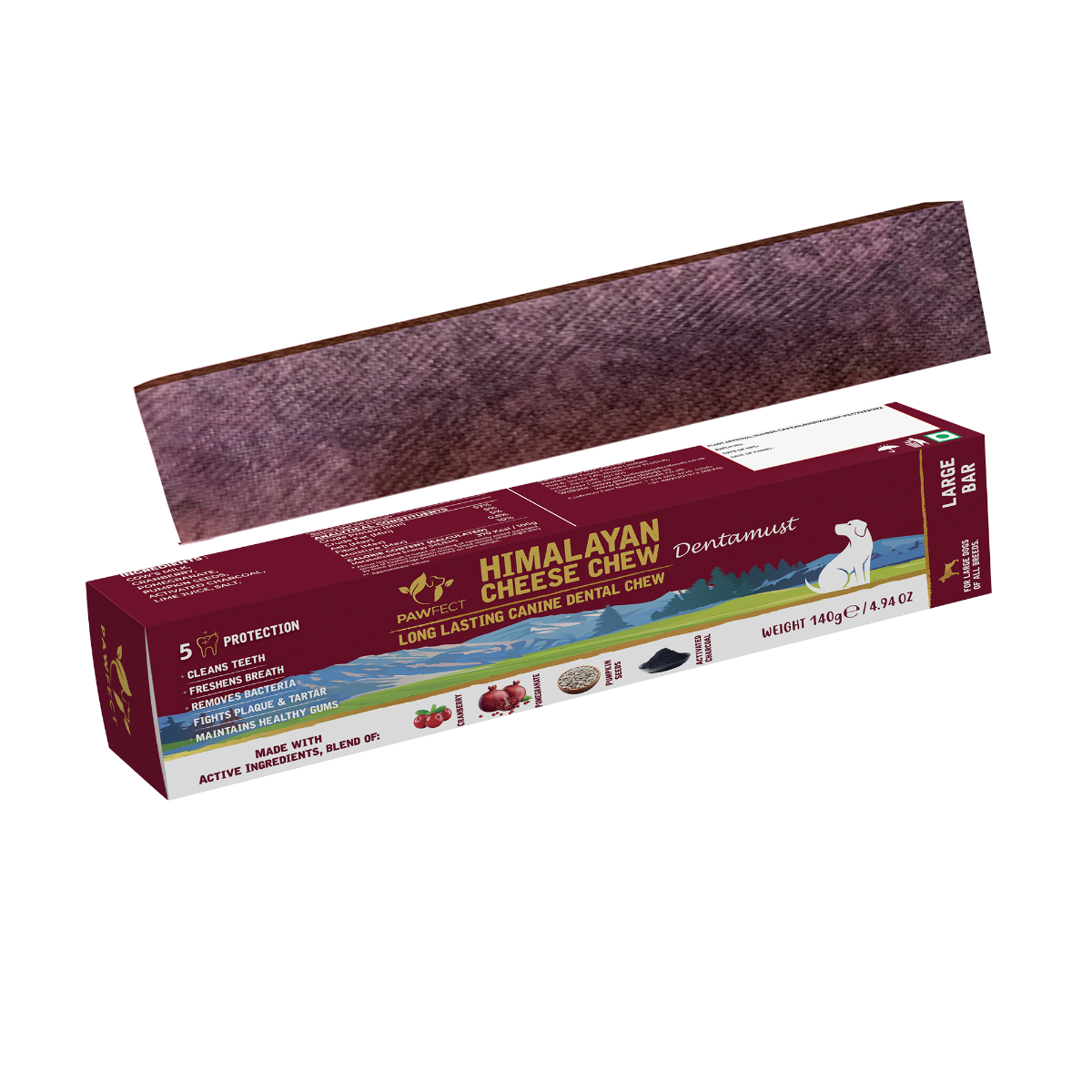 Pawfect Dentamust Himalayan Cheese Chew with Cranberry & Pomegranate for Dogs|Long lasting dental chews with Superfoods |All Natural, High protein|Grain-free | Pack of 1 for Large Dogs (140g/4.94oz)