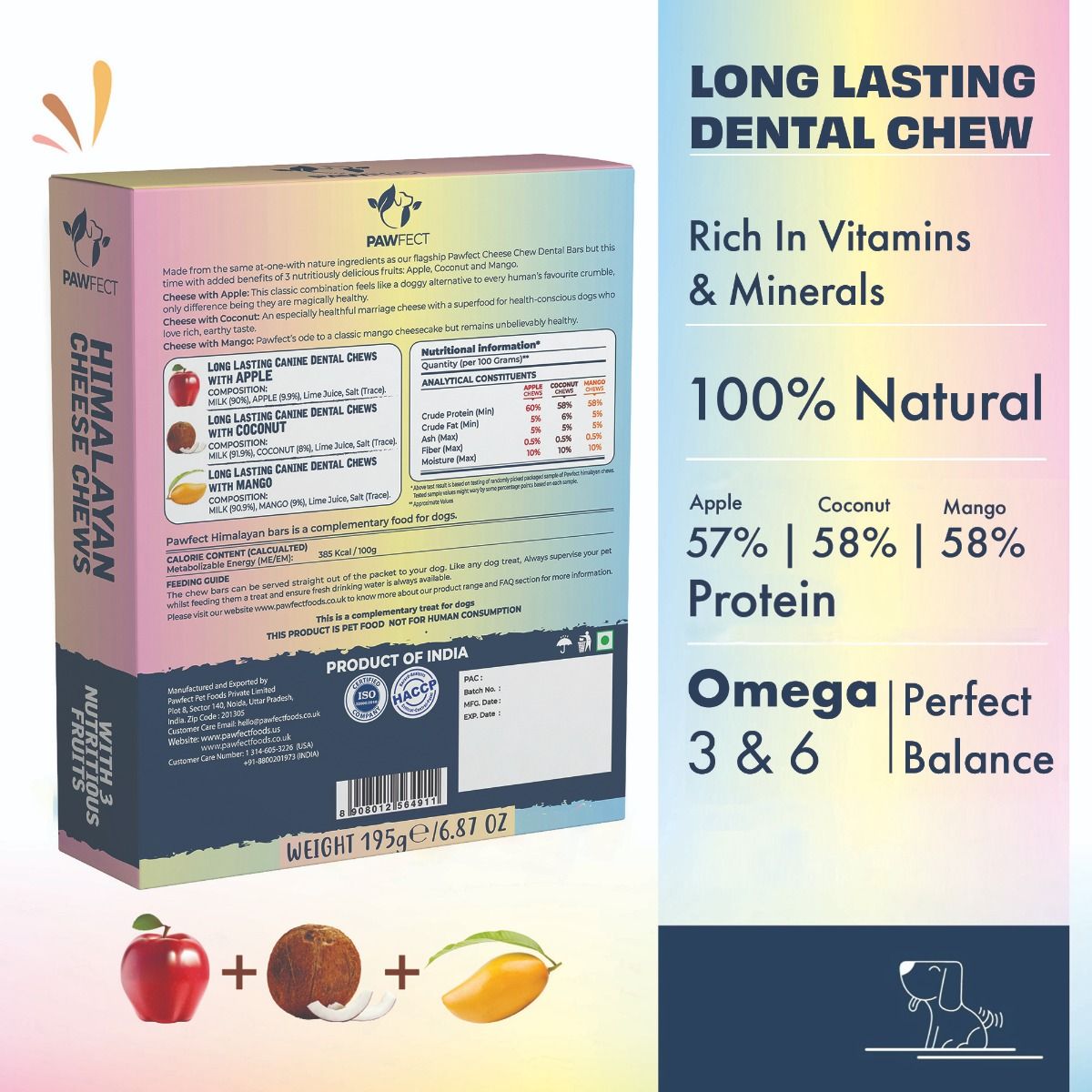 Pawfect Himalayan Cheese Chews with Apple, Mango & Coconut for Medium Dogs | All Natural dental stick | Rich in Protein & Calcium | Grain-free | Long-lasting chew |Pack of 3 (195g/6.88oz)