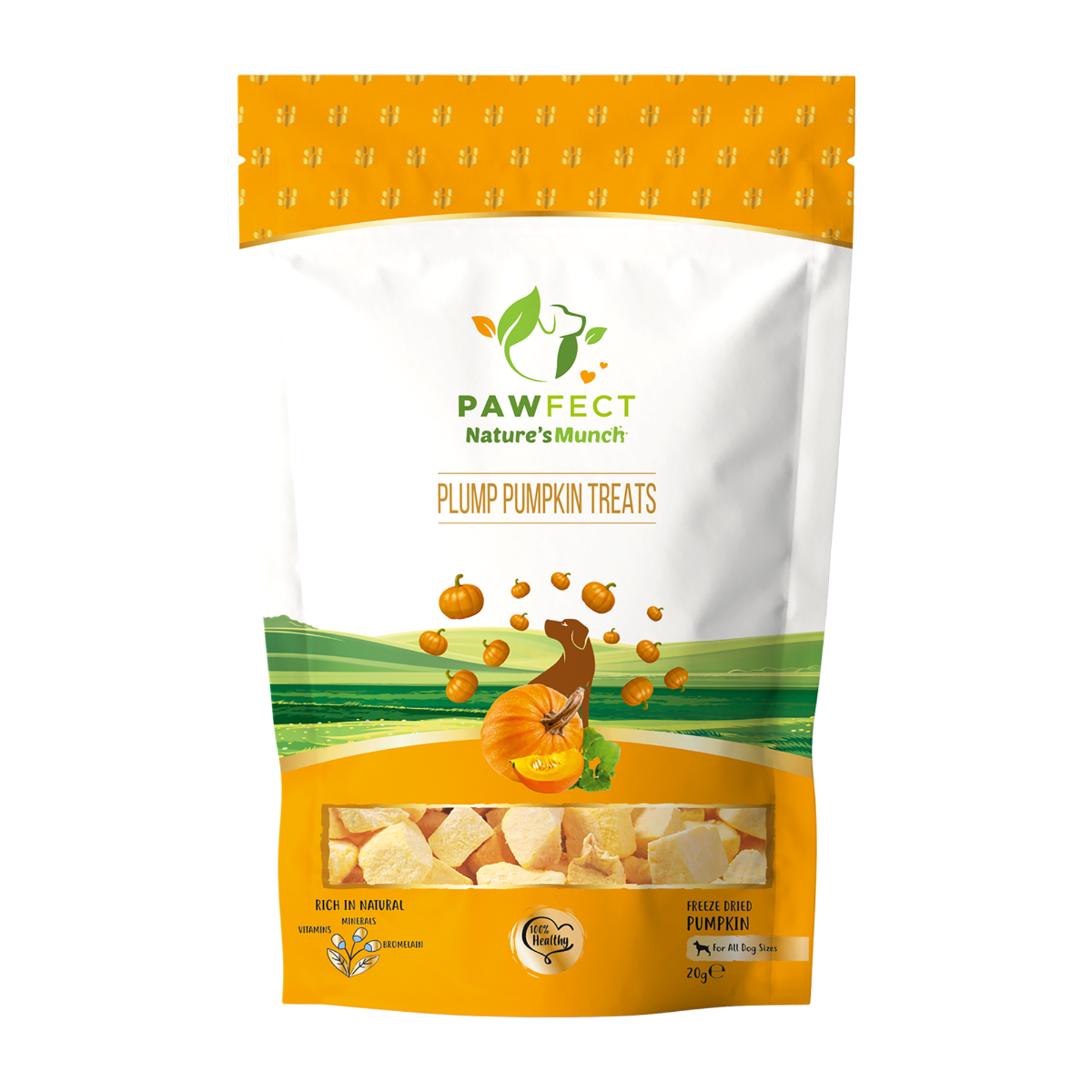 Pawfect Nature's Munch Freeze-Dried Plump Pumpkin Treats for Dogs | Hypoallergenic, Grain-Free |Skin & Coat Boost | Natural Dewormer Treats (20g/0.7oz)